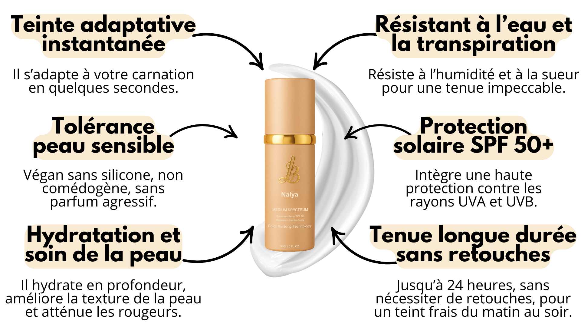 Nalya est formulée vegan, sans gluten, sans parfum, sans alcool et sans ingrédients agressifs.
