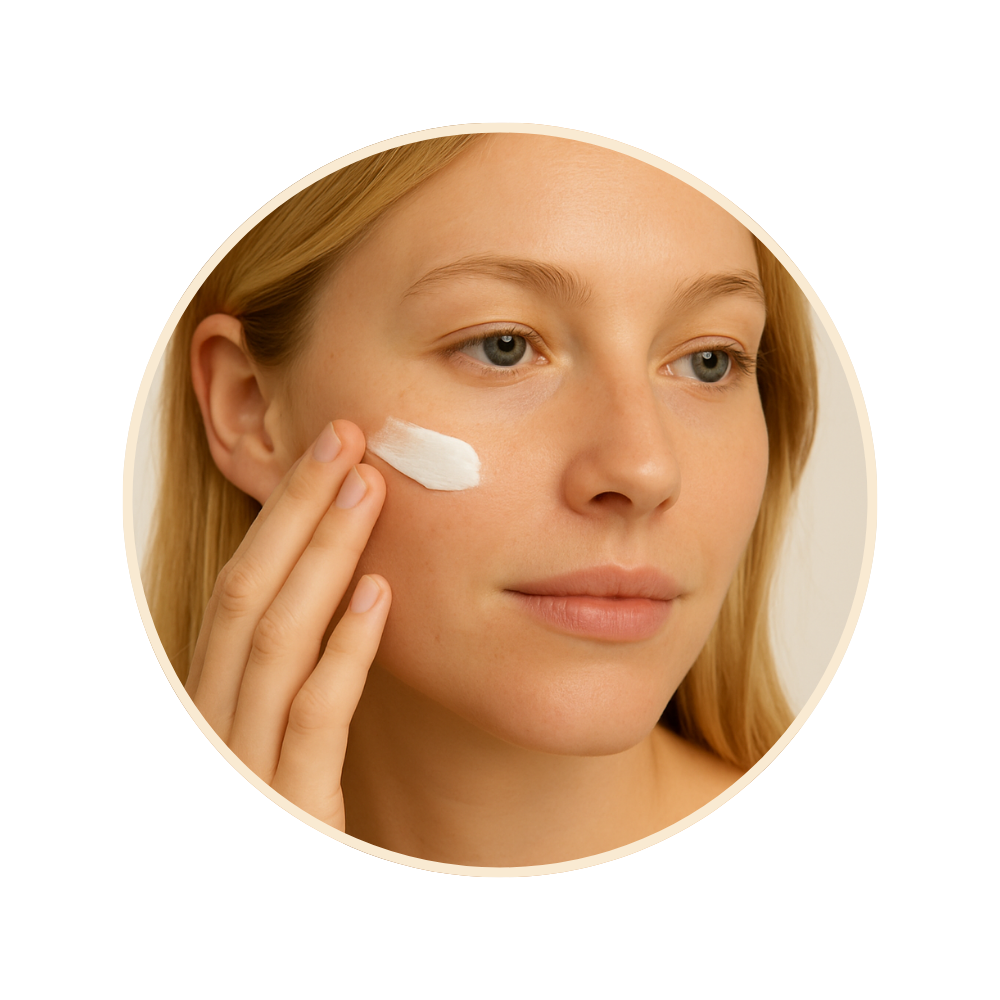 Appliquez une noisette sur peau propre avec les doigts ou un pinceau.